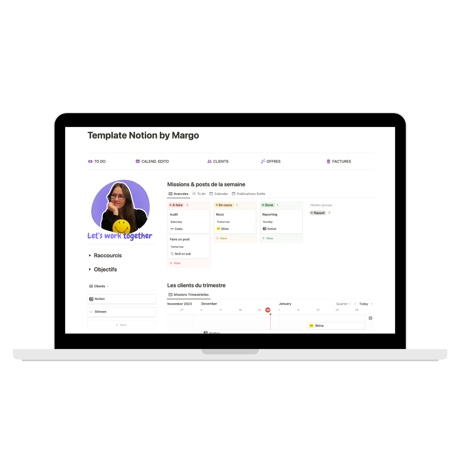 J'ai créé mon premier template Notion pour simplifier la vie des entrepreneurs ! Il est gratuit pour le moment, et j'adorerais avoir ton avis. N'hésite pas à me faire un retour.